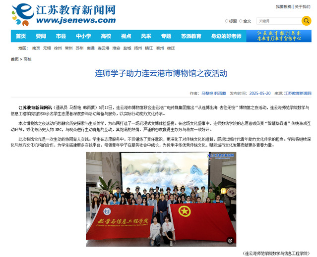 【江苏教育新闻网】连师学子助力连云港市博物馆之夜活动